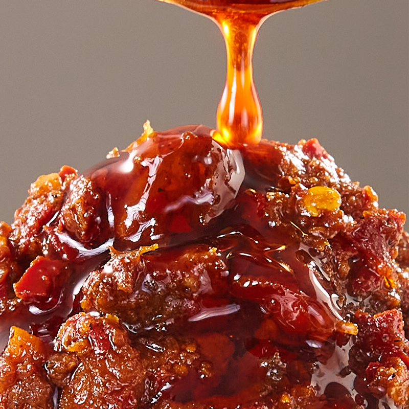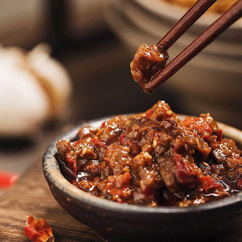 Содержание говядины значительное и заметное, каждый кусочек содержит нежные кусочки мяса, которые дарят насыщенное удовольствие. Содержится в чистом составе без добавок, с прозрачным списком ингредиентов, в основе которого лежит говядина, дополненная натуральными ингредиентами, такими как пищевое растительное масло и уксус, для получения насыщенного, многослойного вкуса. Его пикантный аромат имеет тонкий острый привкус — не слишком сильный, но, несомненно, манящий. Будь то в качестве добавки к рисовой каше, в сочетании с лапшой, в качестве гарнира к жареному мясу или как соус для овощей, он легко улучшит любое блюдо.