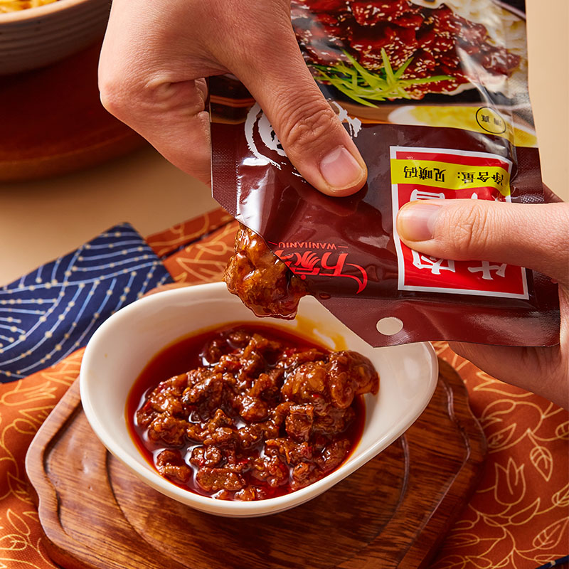 54% содержания говядины, настоящая говядина, которую можно жевать, медленно приготовленная для получения нежного аромата, каждый кусочек — это подлинный старый вкус